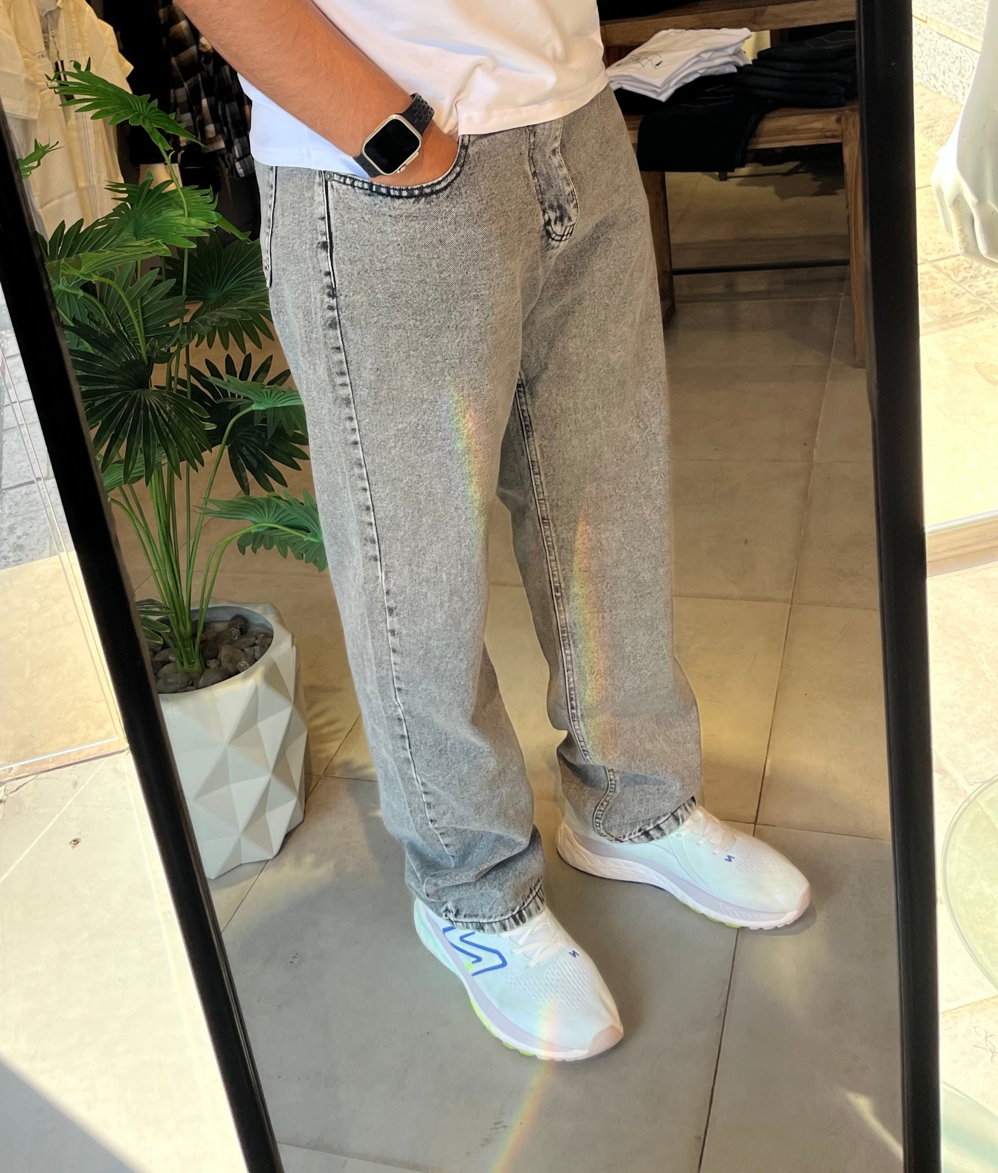 بنطلون جينز بخامة طبيعية 100% قطن، قصة مريحة وعصرية، ولون رمادي غامق يخليك دايمًا في الـsafe zone من غير ما تكون basic.